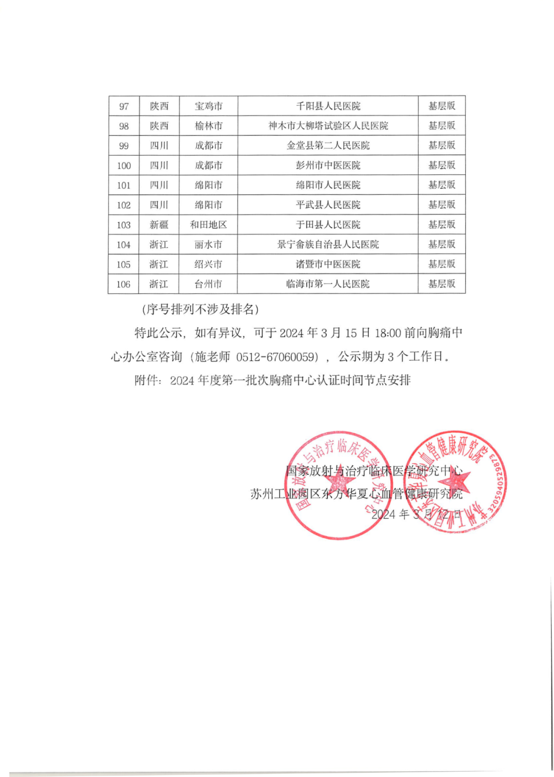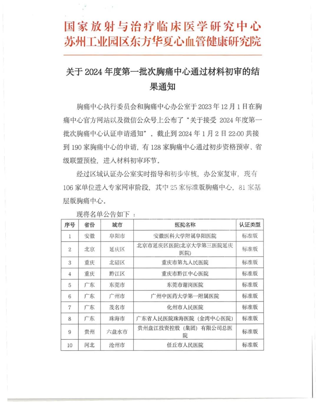 重要通知丨关于2024年度第一批次胸痛中心通过材料初审的结果通知