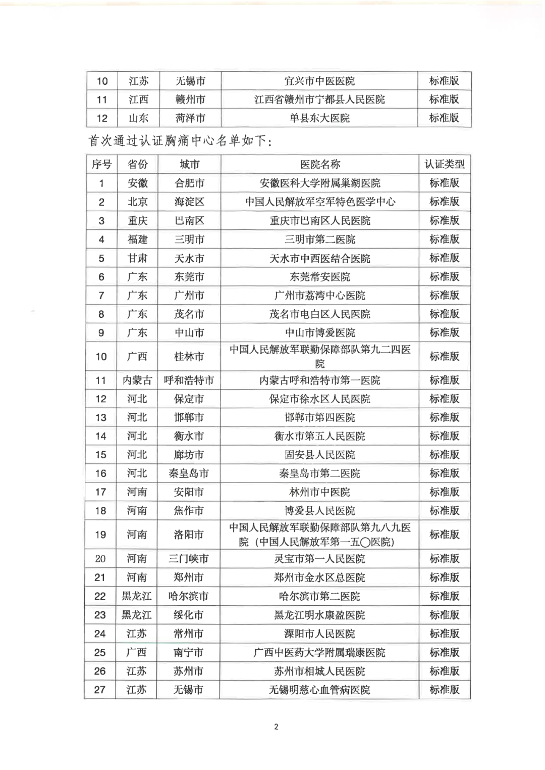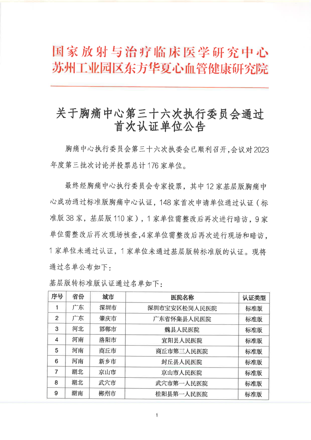重要通知丨关于胸痛中心第三十六次执行委员会通过首次认证单位公告