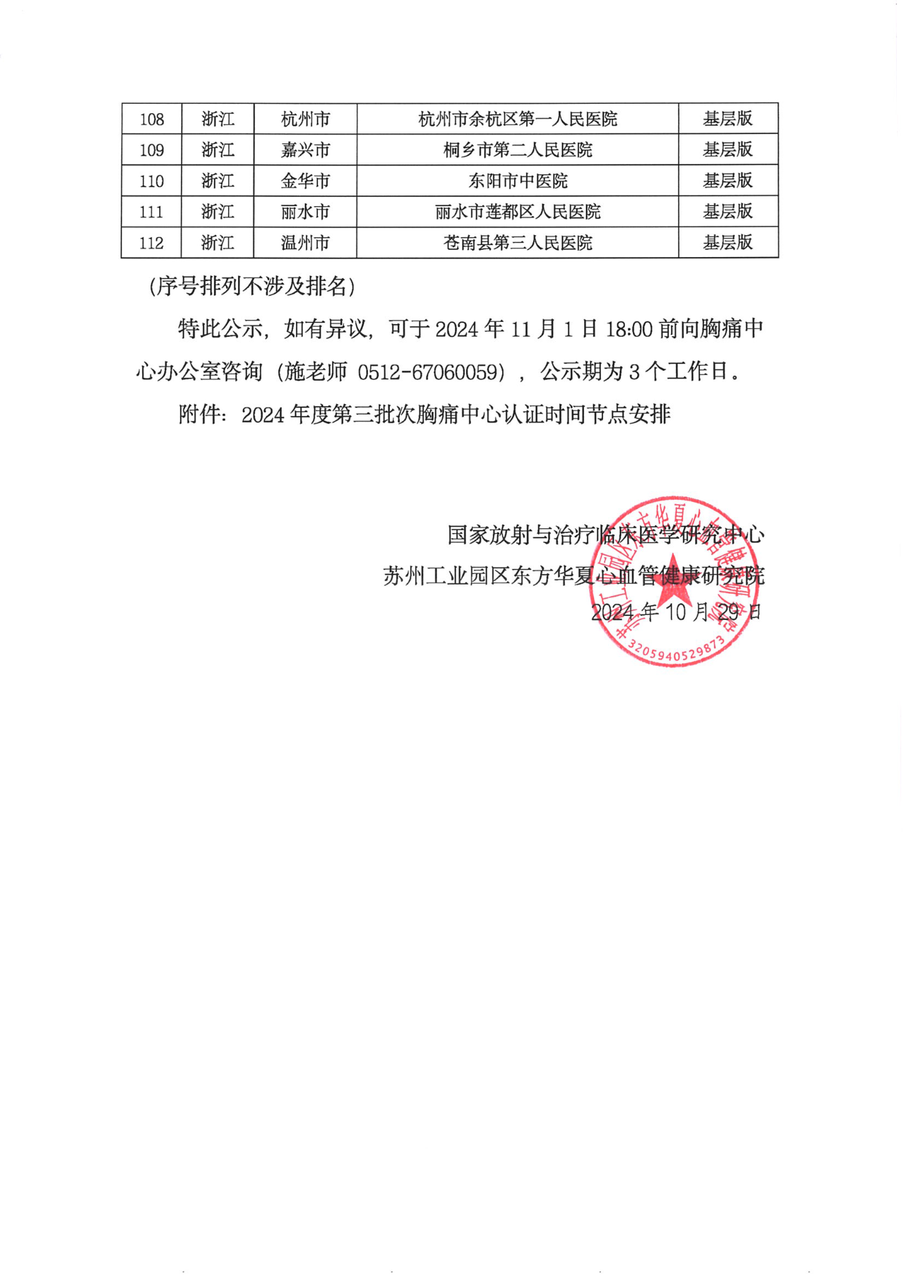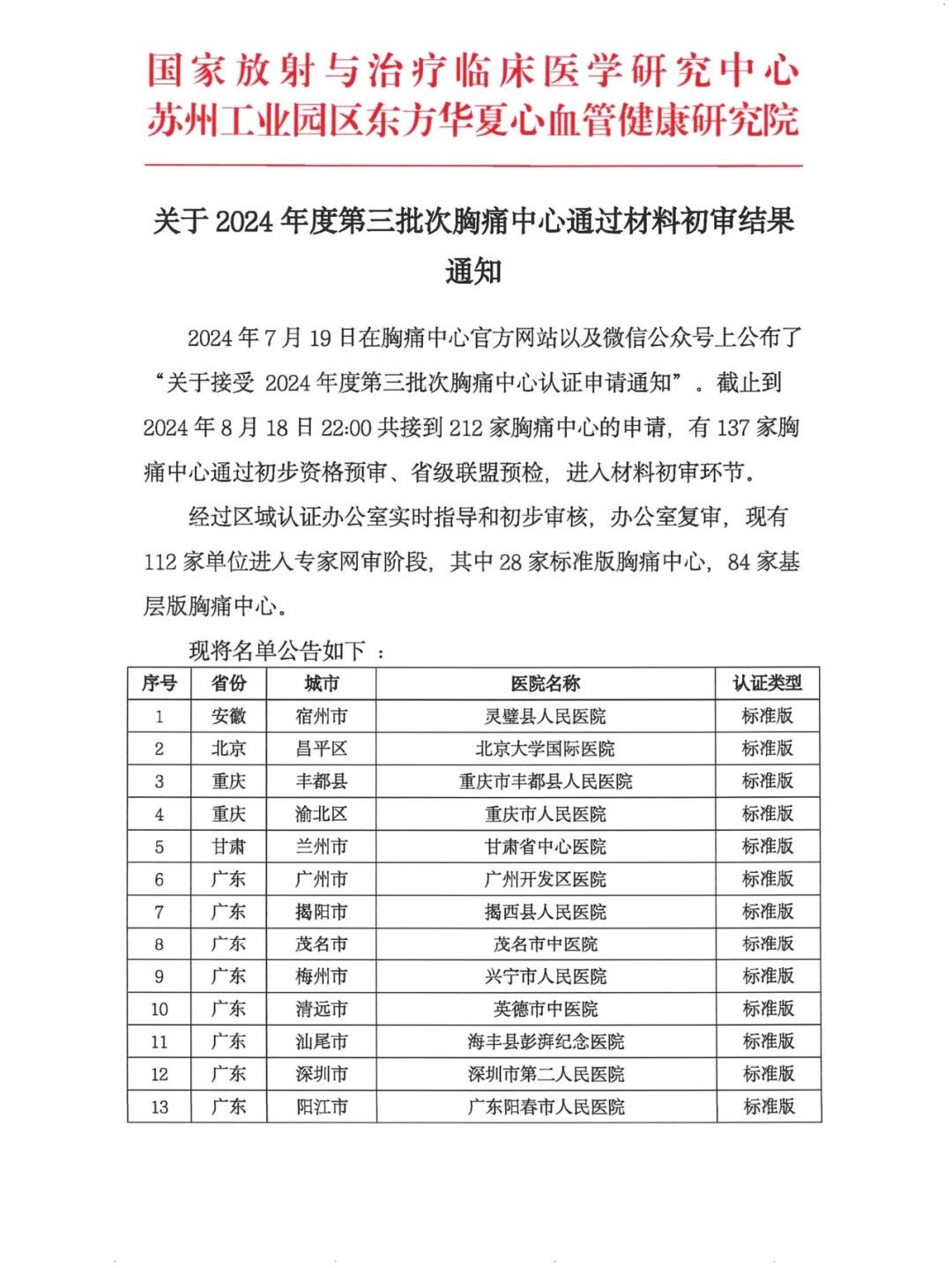 重要通知 | 关于2024年度第三批次胸痛中心通过材料初审结果通知