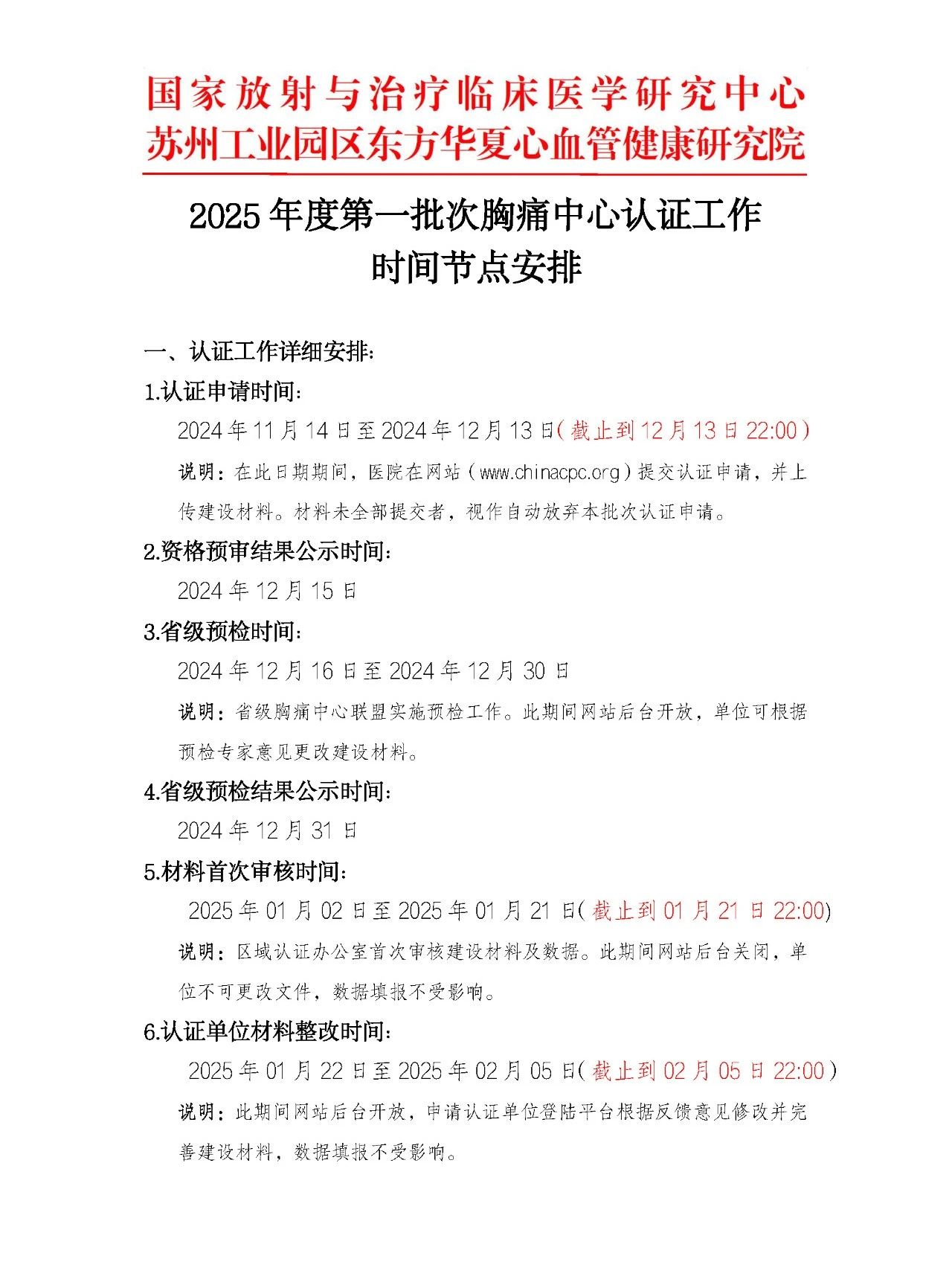 重要通知|2025年度第一批次胸痛中心认证工作时间节点安排