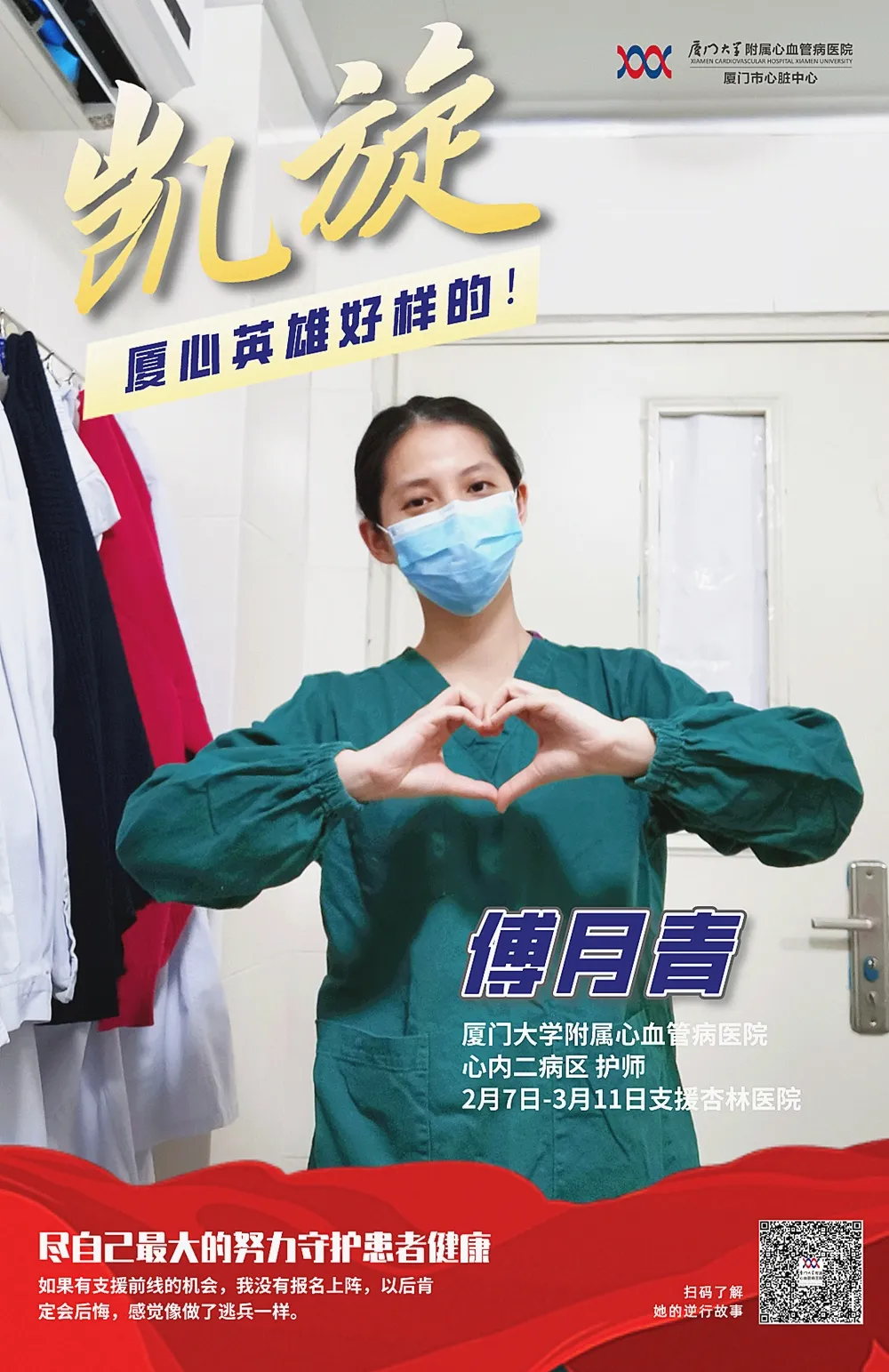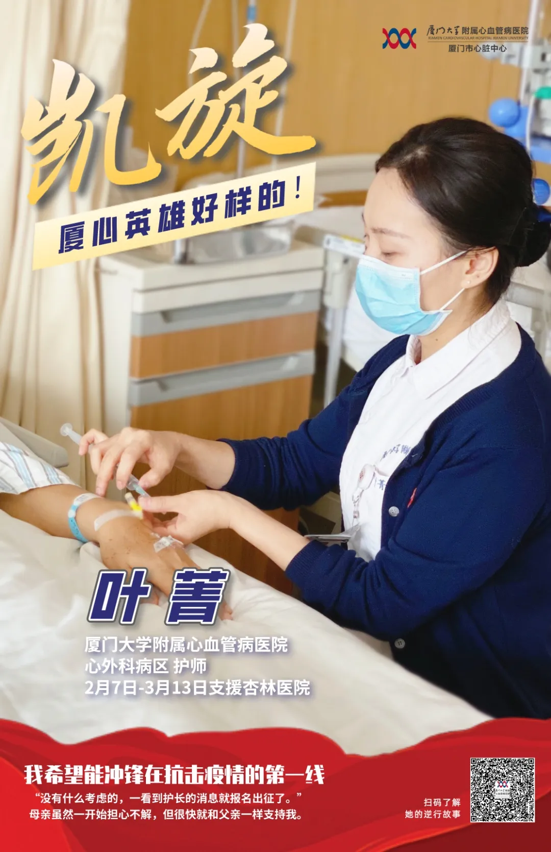 心外科护士叶菁也分享了她刚进入杏林医院工作时的心情,“戴了三层手套,比起刚上阵的紧张,更担心手套太厚影响护理操作,进病区第一次给患者扎针时,特别小心地反复确认,结果一针见血,我特别高兴。”