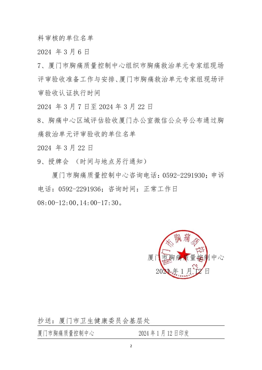 重要通知 | 关于2024年度第一批次(总第八批次)厦门市胸痛救治单元评审验收工作时间节点安排的通知