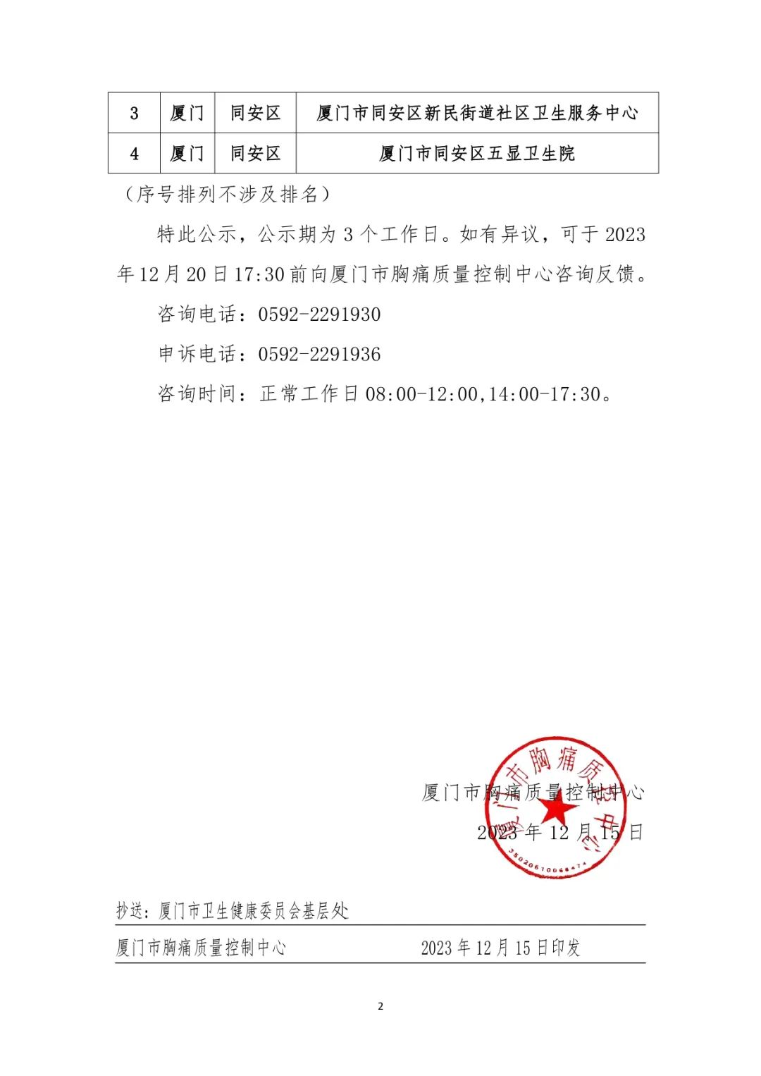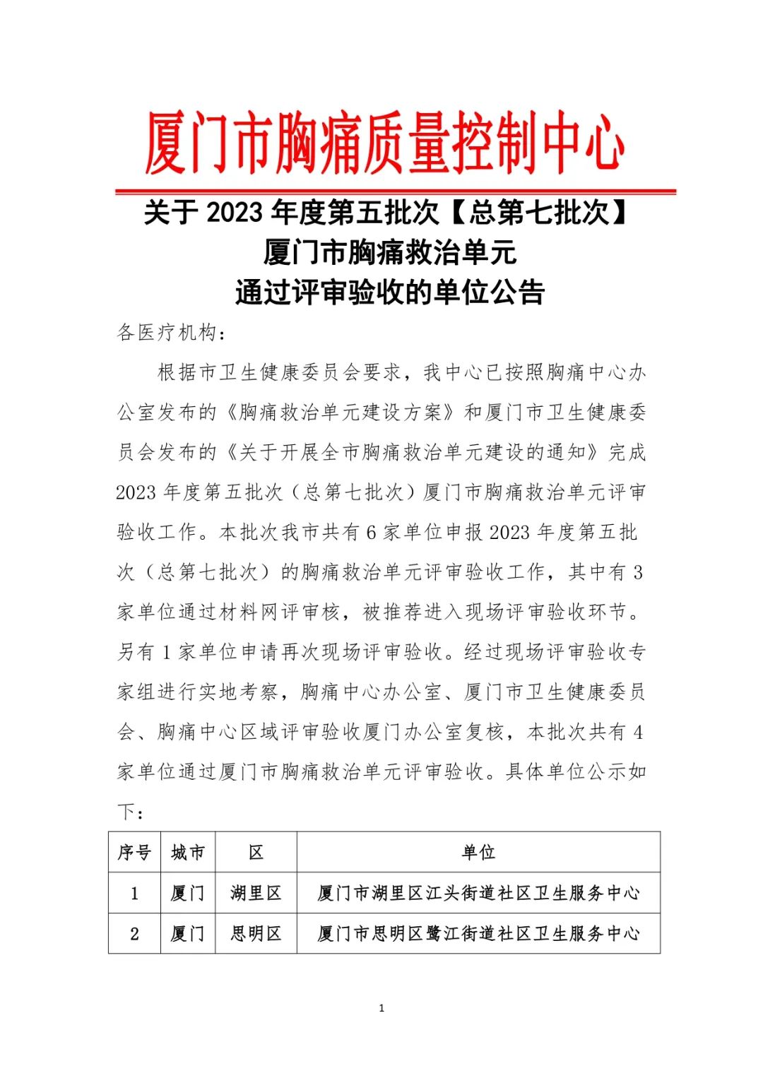 重要通知 | 关于2023年度第五批次(总第七批次)厦门市胸痛救治单元通过评审验收的单位公告
