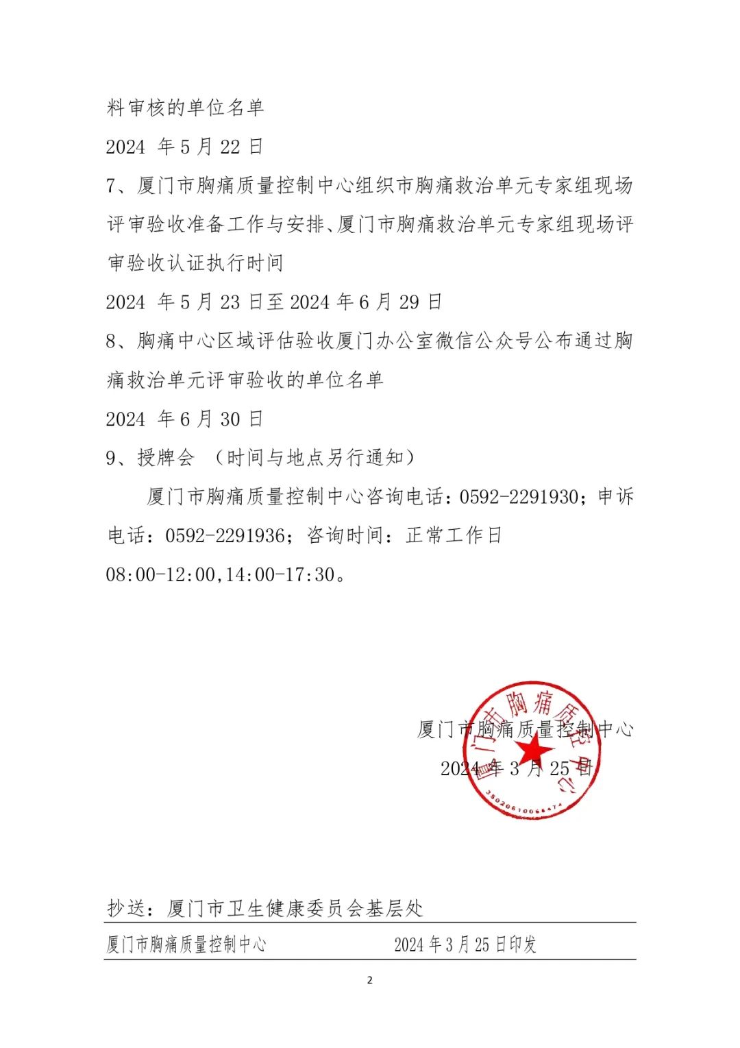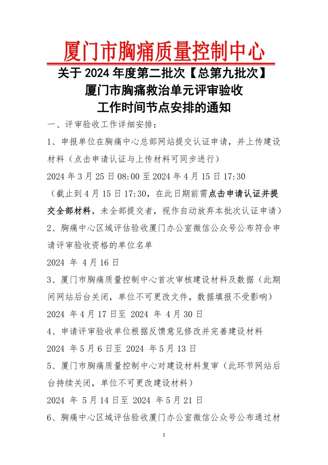 重要通知 |关于2024年度第二批次(总第九批次)厦门市胸痛救治单元评审验收工作时间节点安排的通知