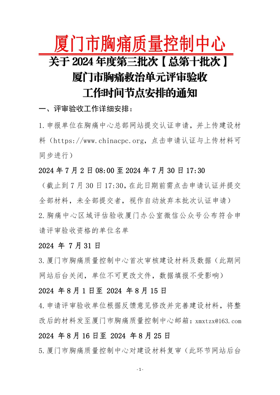 重要通知 | 关于2024年度第三批次(总第十批次)厦门市胸痛救治单元评审验收工作时间节点安排的通知