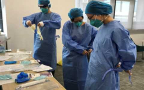 2022-05-10科教部组织在院学生进行一级、二级防护用品穿脱培训及考核