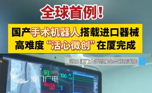 2024-05-30厦门广电|全球首例!国产手术机器人搭载进口器械,高难度“活心微创”在厦完成!